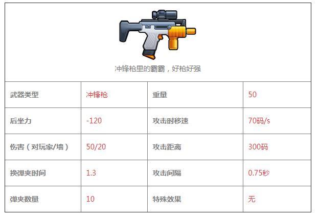 霸霸枪的单发伤害虽然只有字面上的50,但实际体验后笔者发现,霸霸枪的实力远不止于此。准确来说,霸霸枪单发为一次性射出3颗子弹,每颗都能造成50点伤害!所以单发伤害应该是150,相当恐怖的数字了,三发全中敌人直接GG。霸霸枪这样算下来单弹夹理论总伤害是三把冲锋枪中最高的,真的是爸爸了,只是射速手感略为缓慢,单发三连子弹打完后有明显的停顿动作,但爆炸伤害也足以弥补这点,伤害高射速还稳定,那别的枪就没得玩了。