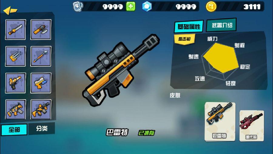 巴雷特,在狙击枪系列中现在最有名的枪型,在游戏各类武器中也是当之无愧的霸王,在属性中有着满值的攻击力、稳定和射程。高达500码的射程可以让小仙女可以在远处优先射击对方,凭着巴雷特的高伤害,残血基本上带走,满血就打残让队友补刀。巴雷特因为攻速慢而且畏惧敌方火力压制近身战的问题,也在小仙女的被动移速加成和技能闪现得到了非常好的解决,瞬移过墙或是直接逃到队友的身边都可以完美的化解危机,而且闪避的被动也让小仙女不被轻易击杀。
