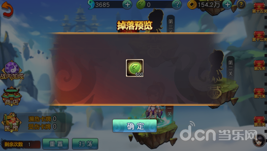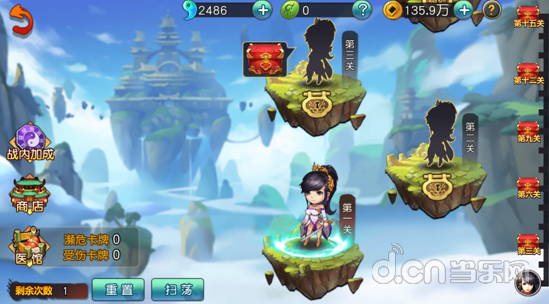 缥缈仙山难度较高,每个小关都有一定的奖励,每 3关有较大的奖励。