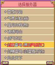 当合区完成后,请原“剑气长江”和“雷霆万钧”区的玩家第一次登录的时候刷新服务器列表,就可以任意选择“剑啸雷鸣(原剑气长江)”或者“剑啸雷鸣(原雷霆万钧)”进入角色列表,这两个入口都可以进入合区后的新区”剑啸雷鸣”。