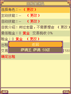 3、玩家可以选择自己账号上的其它角色放到雇佣兵市场上出租,并在出租的时候就设定好战斗技能的使用,不能控制雇佣的角色和其携带的宠物战斗,而会根据设定好的技能战斗。
