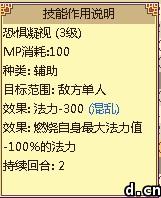 4.恐惧凝视:一辅助神技。100%中,混乱对方2回合,扣600蓝。无视挡宠无敌什么的,除了对方先开暴