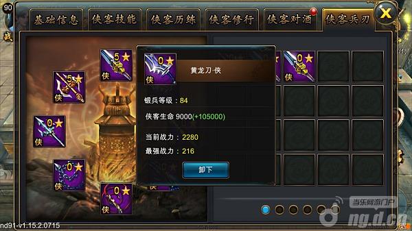 侠客可以装备侠客兵刃来提升出战侠客的属性;
