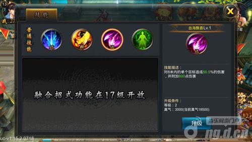 而苍穹神剑、黑龙逆鳞、血海飘香又有可以提升实力的 融合招式,在17级时可以开启。