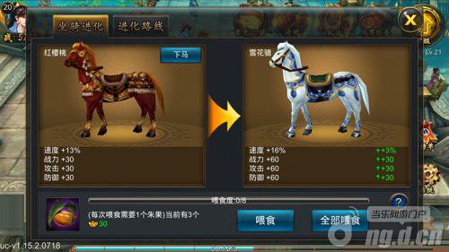 4.坐骑可以通过喂养来提升实力 ,最主要是的进化后可以改变外观 这非常的拉风。