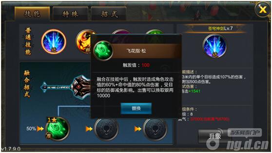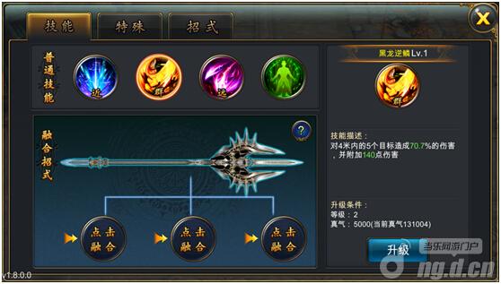 玩家还可以对技能进行招式的融合来提高招式的性能。融合招式后招式的伤害能大大地提高。