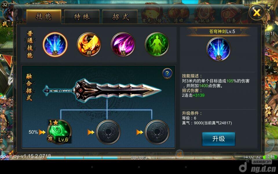 进入武功界面后,可以看到四大普通技能,在这个界面可以对技能进行升级,使得技能的伤害和效果更加的明显。