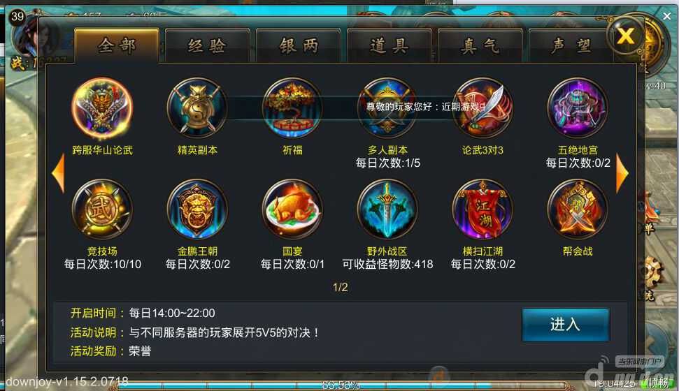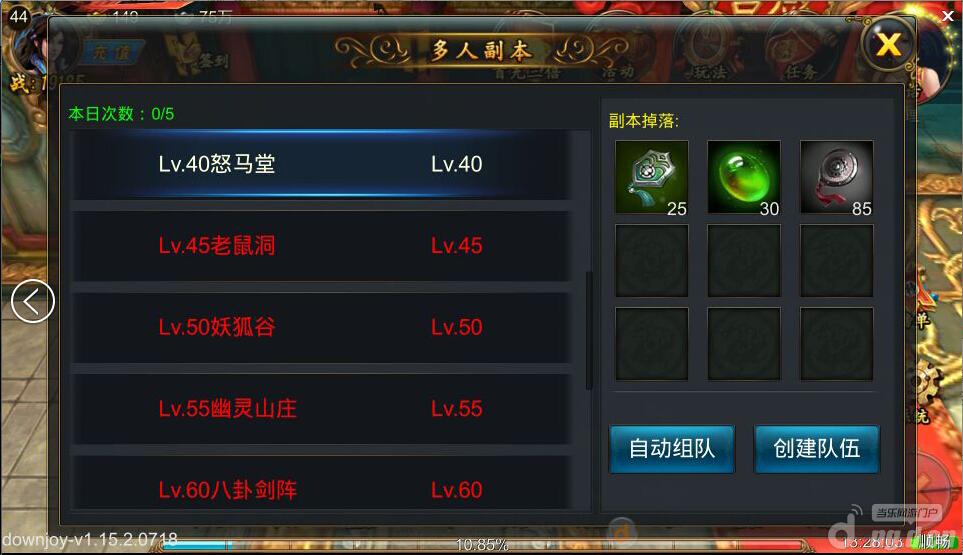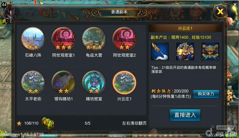 整个游戏副本花样性较多,分为普通副本、精英副本以及多人副本。副本都是全天开启,普通副本相当于是你独步江湖,打造你基础增加你历练的地方。副本奖励除了大量的人物经验外,还有一定的银两和普通装备(当然你人品爆棚的时候会爆到紫装那就恭喜啦)以及帮贡。