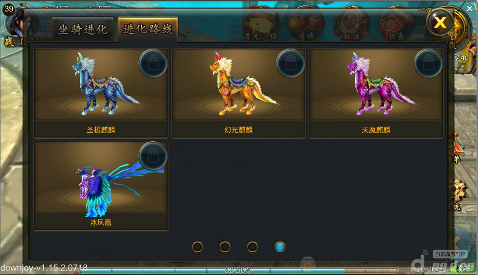 玩家刚进入游戏,到了一定的等级系统会自动送你一只小黑马,小黑马的进化就是从黑穷挫蜕变为高富帅的过程(屌丝小编对土豪进化实在无力),小黑马进化到最高级的样子是一只冰凤凰,相当的酷炫高端掉节操。