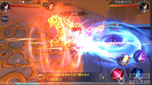 在技能发出的同时,宛如一只猛虎下山,强大的画面冲击与打击感,让每位侠客仿佛置身于一场热血的战斗中,画面对招式精美的细节刻画,红与蓝的碰撞,仿佛两位内功深厚的大侠进行着超级比拼。