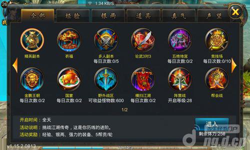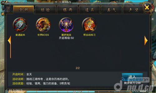 游戏中日常活动非常多,互动性也非常高,可以选择和别人组队进行3V3的PK切磋,也可以1V1的竞技场挑战,还有精彩纷纶的阵营战和帮会战。可以和别人一起挑战极限模式,获得高额奖励,可以参加副本去获取更好的装备,在没有任务的情况下副本是主要的获取经验的地方。游戏副本可以离线扫荡这是非常不错的,每天下线的时候就可以把所有体力消耗完毕,这会省掉很多时间。
