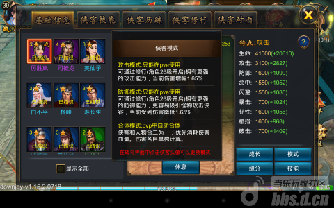所以在精英副本或者多人副本的boss战时,需要随时调整侠客的模式,尽量保持侠客存活,毕竟侠客死了是需要60S的CD来复活的。而角色可以立刻使用玫瑰或元宝进行原地复活。