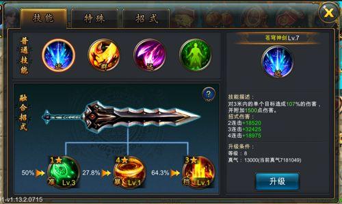 当玩家达到一定等级的时候,可以对技能进行招式融合,创造出自己的技能效果。招式本身带有一个触发式效果,当被融合进技能时,每次使用技能,都有一定的概率触发效果。
