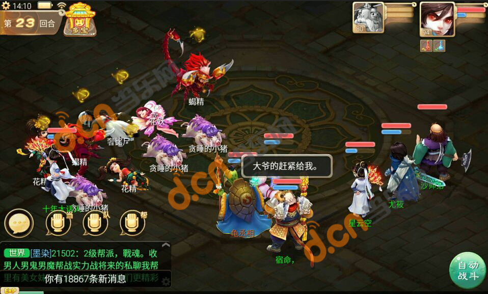 说明:第一回合猪还没开始睡,猛攻是最好的方式;前期魔的速度有可能没boss快,所以可以直接大抽,如果攻宝宝比较厉害,比如龙马啊这种,可以加个牛。