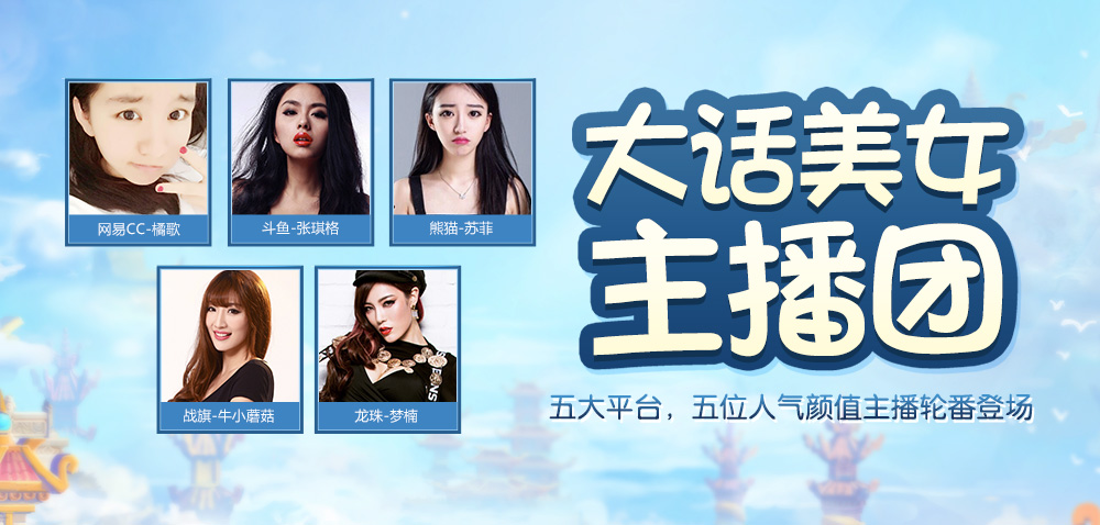 此次 “大话高能直播周”当中,《大话西游》手游将首次邀请到网易cc主播橘歌、斗鱼主播张琪格、战旗主播牛小蘑菇,以及来自龙珠的主播梦楠、熊猫主播苏菲等五名圈内知名美女主播。11月16日至20日活动期间,每晚8点到9点,五位高能颜值女主播将轮番依次登录斗鱼、战旗、龙珠、熊猫、网易cc五大直播平台,为玩家带来全面新鲜有趣的新资料片试玩直播内容。