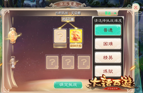 在队伍组成的部分,5人组队开启玩法后,如果有队友掉线,其余人可继续进行玩法,不能新增新队员;如果队伍已不足3人,可主动放弃任务,再次参与南斗星象的玩法。此次全新开启的“南斗星象”玩法,同样为玩家队伍准备了丰厚的游戏奖励。在任务通关过程中,战胜对应关卡星君,队伍中的每一位玩家都将有机会获得神兽丹、金柳露、染料、特殊属性卡、高级变身卡等丰厚游戏奖励。