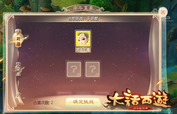 在即将推出的“南斗星象”玩法当中,总计拥有21个类型不同的关卡,打败一关星君使得对应星象归位,便可开启下一关卡挑战,通关每一关卡玩家队伍都将获得丰厚的物品奖励。所有关卡的星君都有着随机生成的不同属性,玩家可通过总计两次占星机会,窥探对应管卡星君属性类别。