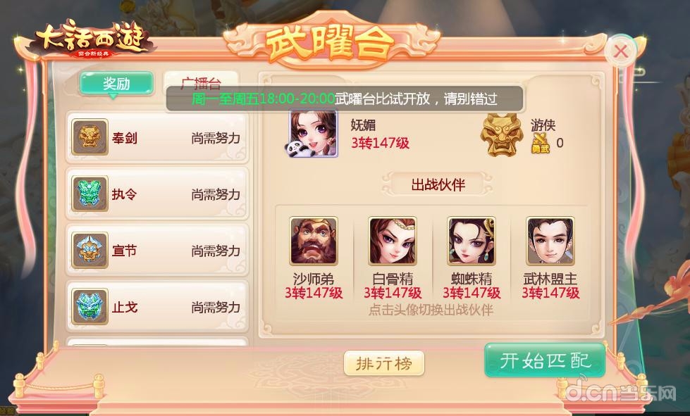 作为一类为玩家全新打造的单人匹配的跨服PVP玩法,“武曜台”将于周一到周五每天18点-20点震撼开启。玩家等级≥0转80级,即可前往天宫(117,25)真武道童处,加入 “武曜台”的晋级之路,开启PK封神之路!