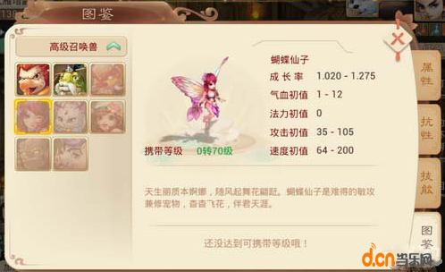 蝴蝶仙子属性介绍: