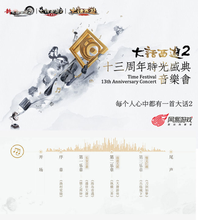 对于每一个大话西游忠实玩家来说,游戏中的每一个场景、每一段音乐,都记载着关于青春、兄弟最美好的回忆。《新大话西游2》与《大话西游2免费版》也在大话13周年之际,将大话中经典音乐重新升华,为大话2的老玩家们演绎了一场焕然一新的中国风交响听觉盛宴。