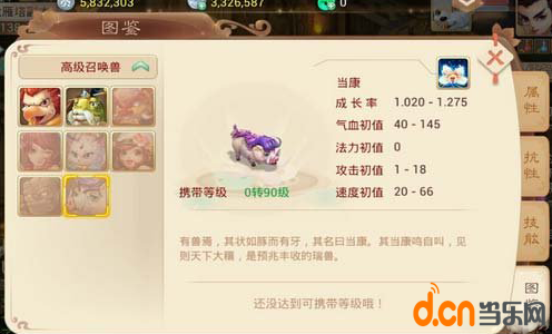 使用天书残卷第一三四七七十卷,找灵兽村灵兽长者拼成《当康古卷》,然后用古卷和任意召唤兽炼妖,获得“当康”(属性随机)