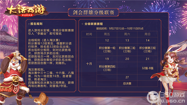 积分赛:10月12日、10月13日、10月14日及10月19日的20时开始