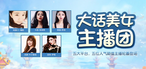 除了完美还原游戏中精致细腻的场景设定、超高颜值的人物角色,《大话西游》手游 “七十二变”全新资料片当中众多的新增玩法内容,同样也在iPad Pro平台试玩当中,得到了流畅细致的展现。 五大颜值主播 高能直播周持续火爆 11月16日-20日大话高能直播周期间,斗鱼TV主播张琪格,战旗TV主播牛小蘑菇、龙珠TV主播梦楠、熊猫TV主播苏菲,以及网易cc主播橘歌共计五位高能颜值主播,还将在每晚8时轮番登录五大平台,带来内容丰富的大话直播。