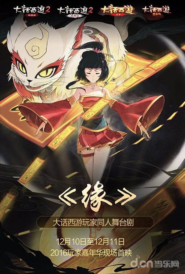 以此为蓝本进行创作的同人舞台剧《缘》,将继续以祭剑魂与夜溪灵为主角,延续这段唯美情缘,讲述他们的相遇、相知和别离。而在全新的舞台剧中,逍遥生、狐美人、神秀生、云中君……这些角色也将登场,且看他们如何展露风采。12月10日至12月11日,大话西游2016玩家嘉年华现场,一起再续大话情缘!