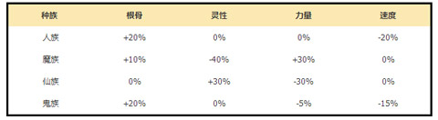 以上是各个种族的四维成长。