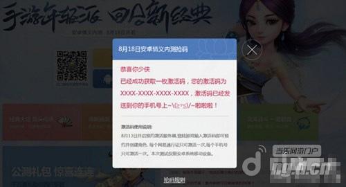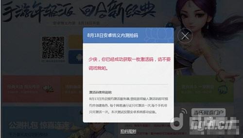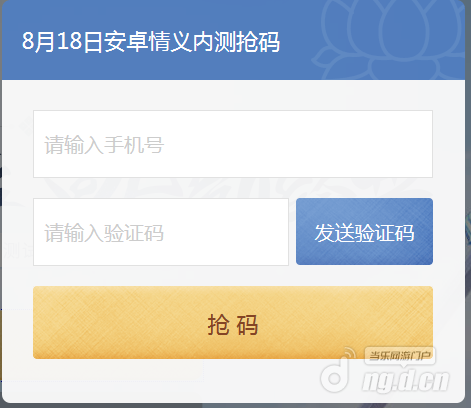 第二步:在弹出的页面中填写好自己的手机号码,点击“发送验证码”,1分钟之内会收到验证码,输入验证码,点击“抢码”,有一定的几率获得安卓情义删档激活码一枚。