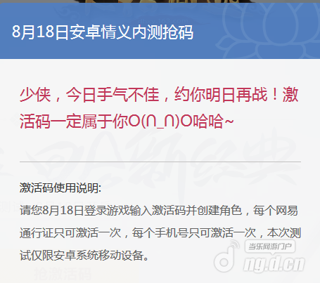 在大话西游手游官网有一定的几率抽取安卓情义删档测试激活码,每天进行尝试即可,具体的指引流程如下: