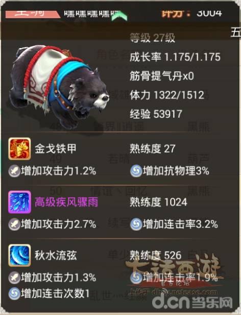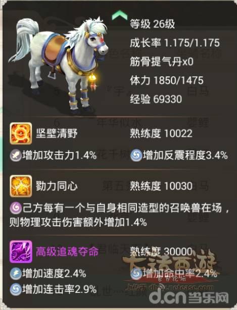 纠结的是3号技能库中还有一号坐骑唯一的一个加速技能追魂夺命,这个技能估计好多练敏攻宝宝的不太舍得放弃吧,至于选伤害爆炸的秋水还是无快不破的追魂,表示只能看脸了,出了啥我都舍不得洗掉,当然成长得给个满值,不然只能忍痛继续洗了。