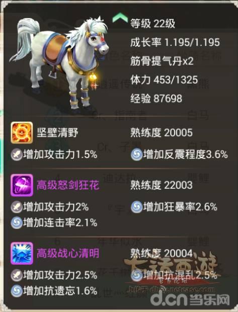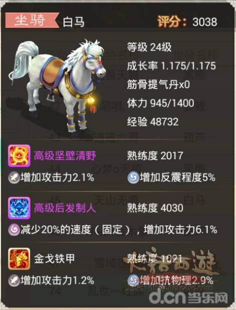 大家最关心的技能肯定有这个加速技能了,目前出的1坐骑只有3号技能格有加速技能,目前26级 满熟练度30000,加速2.4。