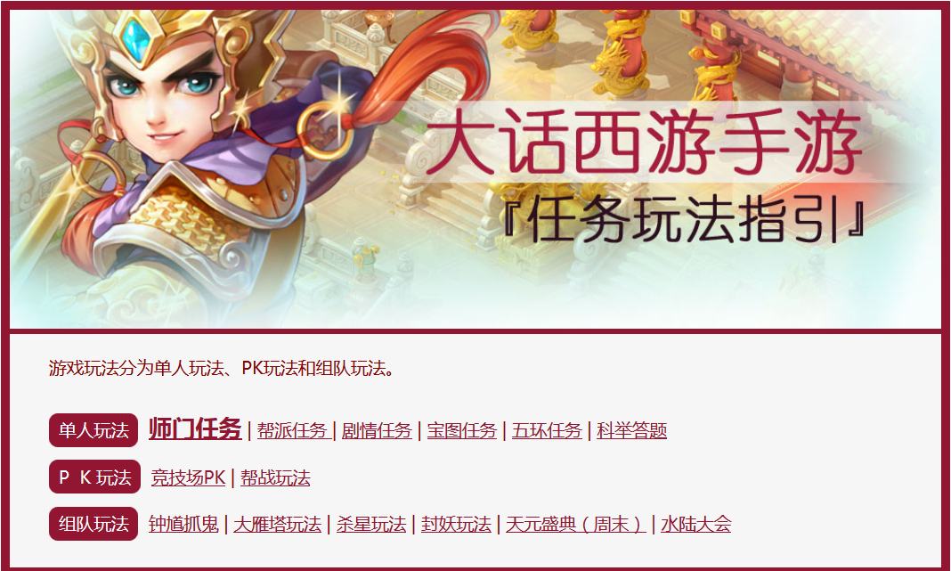 师门任务可以全程开自动,单人可以完成,是属于每个大话玩家需要升级的时候,想要挂机的时候,以及每天一打开游戏就玩的!