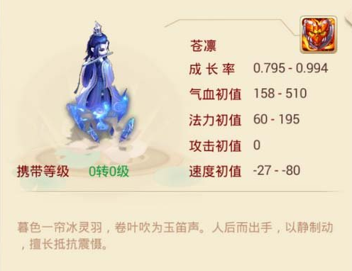 大话西游手游苍凛图鉴一览,暮色一帘冰灵羽,卷叶吹为玉笛声。人后而出手,以静制动,擅长抵抗震慑。我觉得这个宝宝的属性还是不错的,那么培养后会有很大的作用。