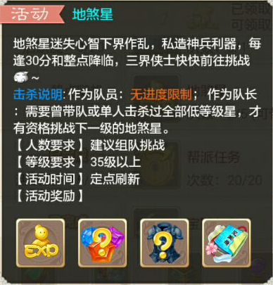 2、队长必须从低级地煞星开始杀起,也就是一星开始,必须自己带队或者单挑过了,才能带队挑战下一个级别的地煞星,队员无要求;