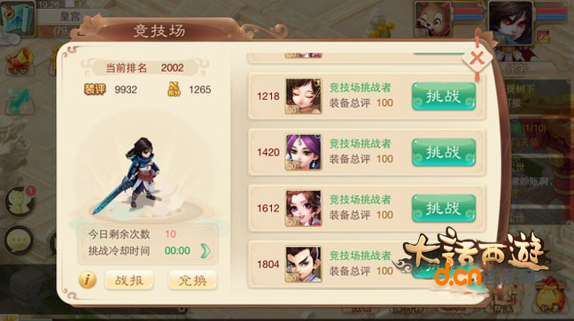 4、点击【挑战】按钮即可挑战排行榜,输赢都有奖励,但是只有赢了才有竞技场积分。