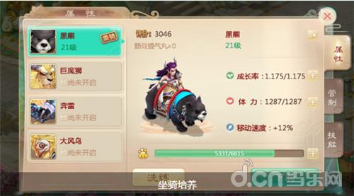 坐骑的培养主要在等级、成长率和技能及技能熟练方面。而坐骑的体力消耗完时管制将失效。
