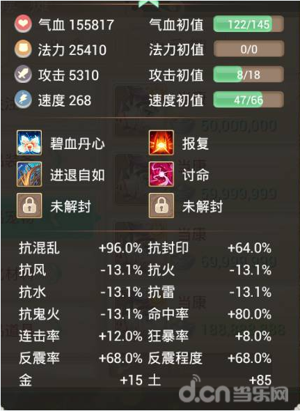 6)天生技能:碧血丹心,提升反震率和反震程度,反震流当康的核心技能之一。
