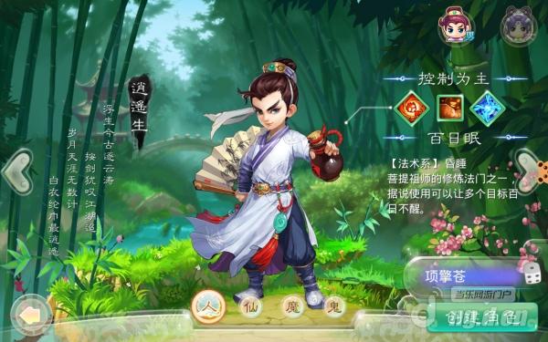 人族逍遥生,角色定位:控制;特色技能:混乱法术