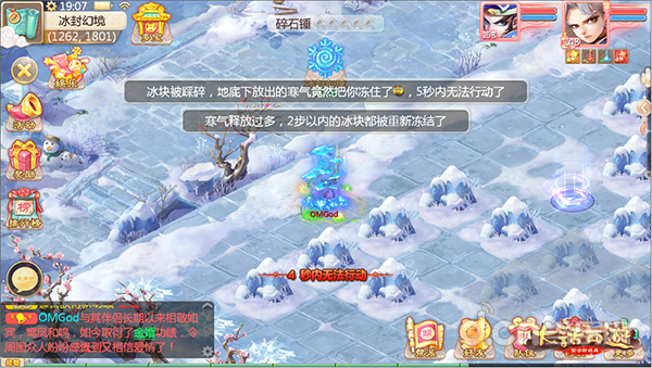 与普通战斗任务不同,这一次玩家将操作自身角色,小心翼翼的通过每一片被冰块覆盖的地面。面对迷宫中遍布着阻碍和陷阱,不同类型的锦囊,或许将起到决定性的作用!在危机重重的“冰封幻境”中,玩家若是碰到了地图的传送机关,还将被随机传送至地图的另一个方位,同时,地图也将重置,玩家通关难度也将大大提升!