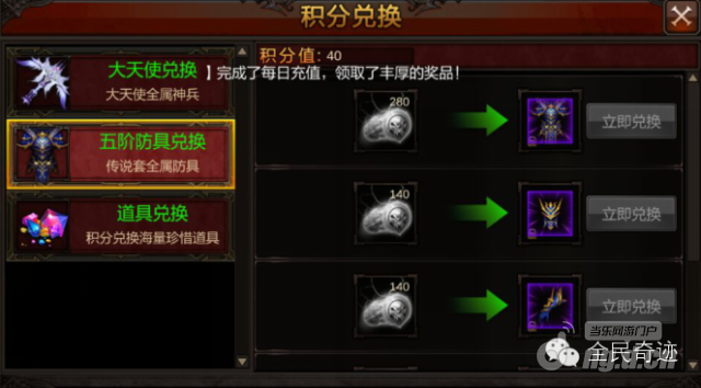 积分可以兑换武器,以及本职业五阶装备套,最求战斗力以及PVP这是最快捷的获取方式,当然也可以进行职业,装备进阶升级