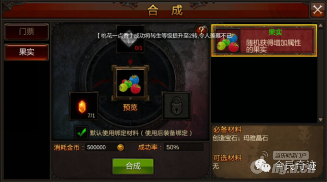这样显示的装备就不是红色的了,装备战斗力和属性全部提升,但是药水只能持续1小时时间,这就是所谓的药罐子,当然嫌麻烦的就去合成属性果实,这个成功率只有%50随机合成。