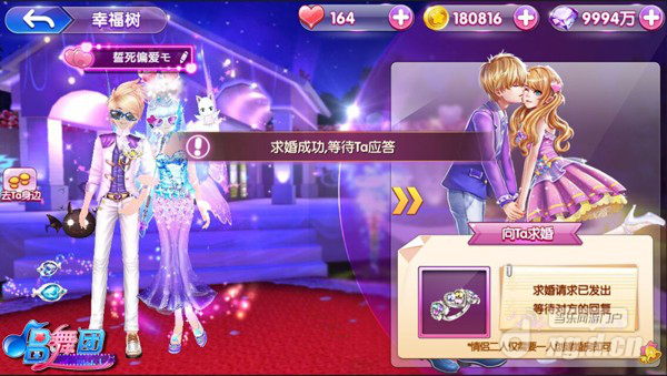 通过不断的努力,亲密度提升到5级后,任意一方点击“求婚”发出求婚的请求。