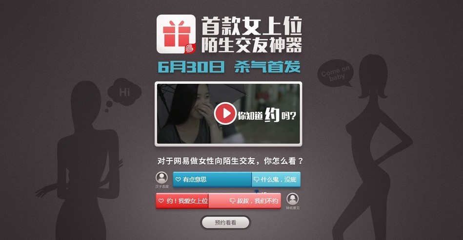 6月30日,女上位预约网站如约揭晓。网易的答案却让大家大跌眼镜,女上位的图标突然转成了《有杀气童话》的图标,陌生交友神器竟然是一款游戏。