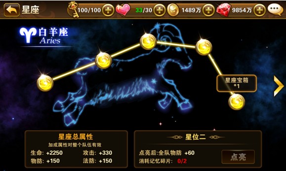 喜欢星座研究的玩家有福啦!《有杀气童话》在最新版本中增加了星座玩法,在主角等级达到15级的时候开启。玩家按白羊座、金牛座、双子座、巨蟹座、狮子座、 座、天秤座、天蝎座、射手座、摩羯座、水瓶座、双鱼座的顺序点亮星座之后,就能获得生命,攻击,物防,法防等加成,大幅提升实力!