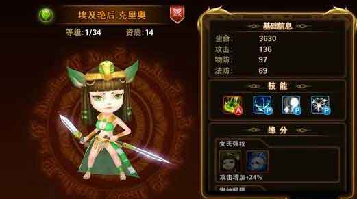 有杀气童话埃及艳后克里奥天赋浅析,在有杀气童话中培养回个伙伴那么最重要的肯定就是天赋的,为啥大家都不用紫色的伙伴,就是因为它们的天赋比橙色的伙伴少了很多天赋的。今天小夏给大家带阿里埃及艳后这个伙伴的天赋介绍。