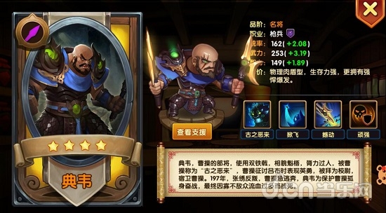 古之恶来:变身为霸体形态,提升自身68点攻击力和100%伤害,且普攻变为群体攻击,持续12秒。