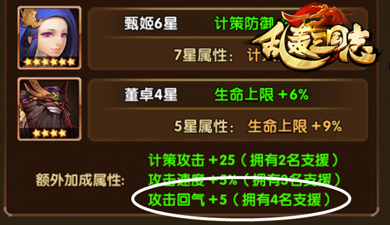 试想,贾诩本身有较高的士气恢复,他的终极支援加成是攻击回气,而新版神装“瑶光套装”的终极属性也是攻击回气,若鉴定或重铸出攻击回气属性,就很容易堆出一个恐怖的数值。笔者一位公会小伙伴,将这个数字堆到了46,加上10的士气自然恢复,再考虑到贾诩不俗的攻击频率,一个开场放大招的贾诩,诞生了。更重要的是,此时敌军前排的士气极低……