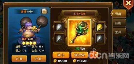 全能型物理战士,统帅、武力、智力成长相对统一,有出色物防、计策防御能力,同时技能具有强AOE输出,在战场上灵活且有很强的生存能力,是实力推进型肉盾,并且获取容易,前期系统赠送的给力前排,玩家前期必用的前排英雄。